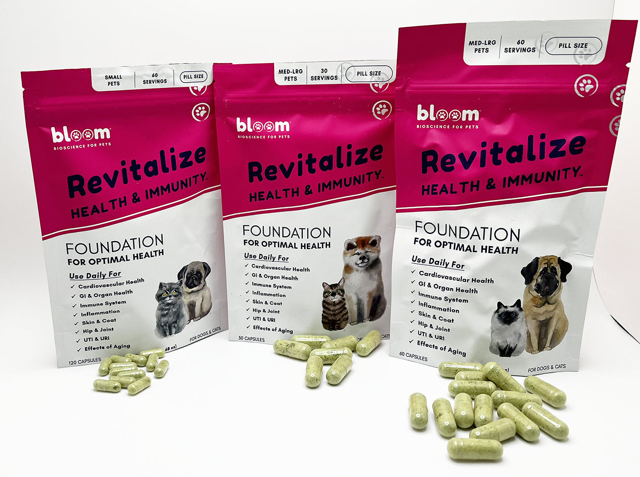 Revitalize Health & Immunity™, Revitalize GI™ and Revitalize Hydration™ are all-natural, human-grade supplements designed to restore and strengthen your pet’s vascular, digestive and immune systems. Best of all there have been no reported adverse effects.