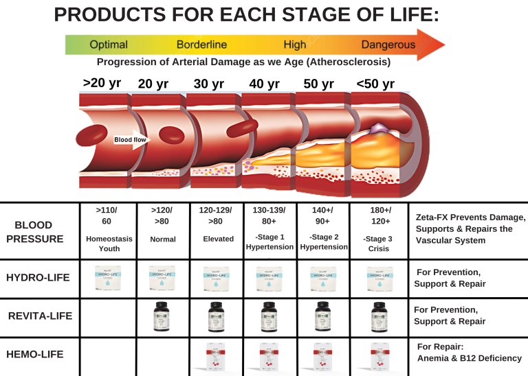 Zeta-FX’s flagship products; Hydro-Life and Revita-Life, were designed to address this core issue. Hydro-Life’s carefully balanced electrolytes, particularly potassium and citrate, naturally help thin the blood, improve circulation, and support vascular integrity. By enhancing blood flow, we enable the body to combat disease and support healing in a sustainable way.